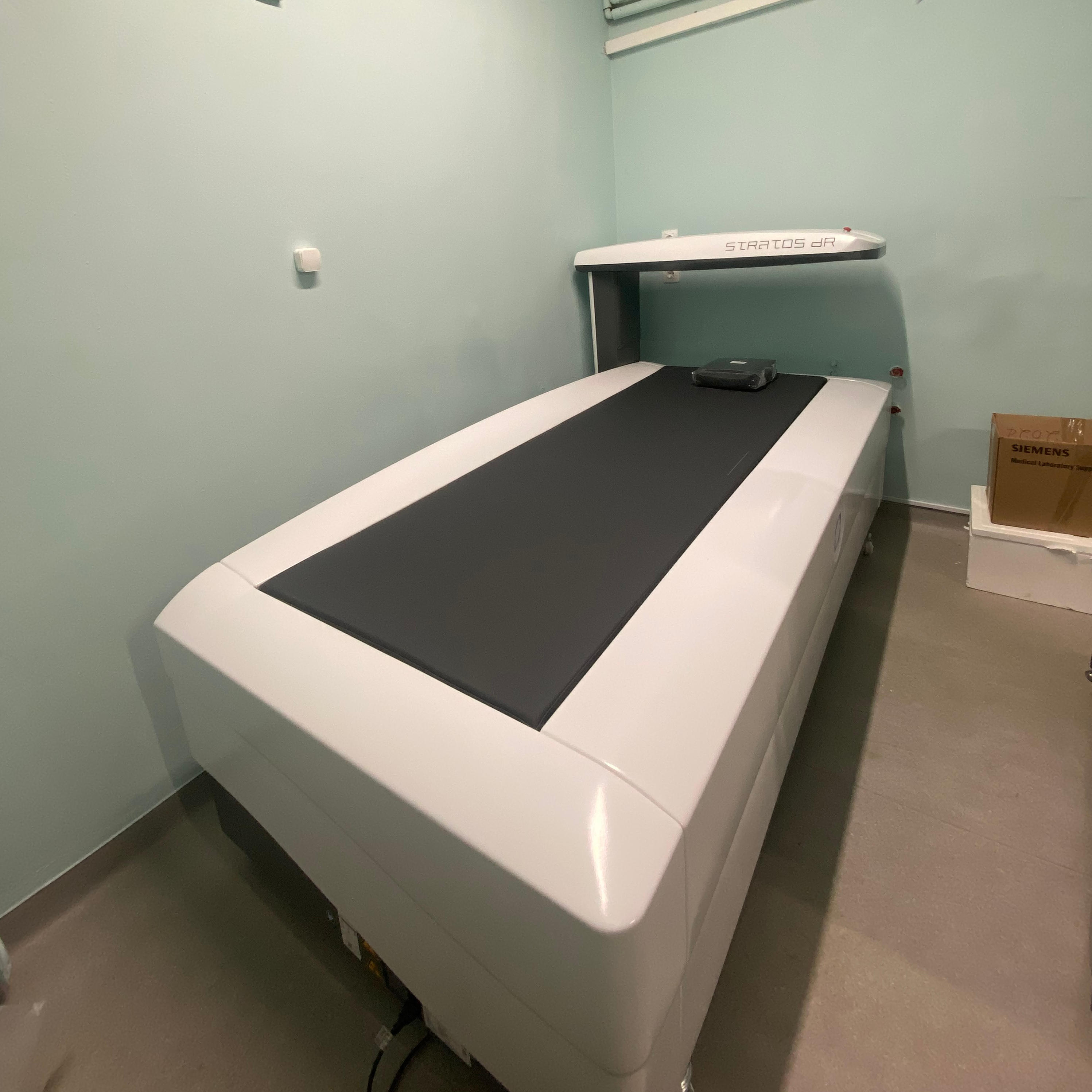Stratos DR bone densitometer απεικονιστικό σύστημα που χρησιμοποιείται για τη μέτρηση της οστικής πυκνότητας (BMD) και την εκτίμηση του κινδύνου κατάγματος. Χρησιμοποιεί τεχνολογία 2D Fan Beam Dual-Energy X-ray Absorptiometry (DXA/DEXA) για την παροχή εικόνων υψηλής ανάλυσης.