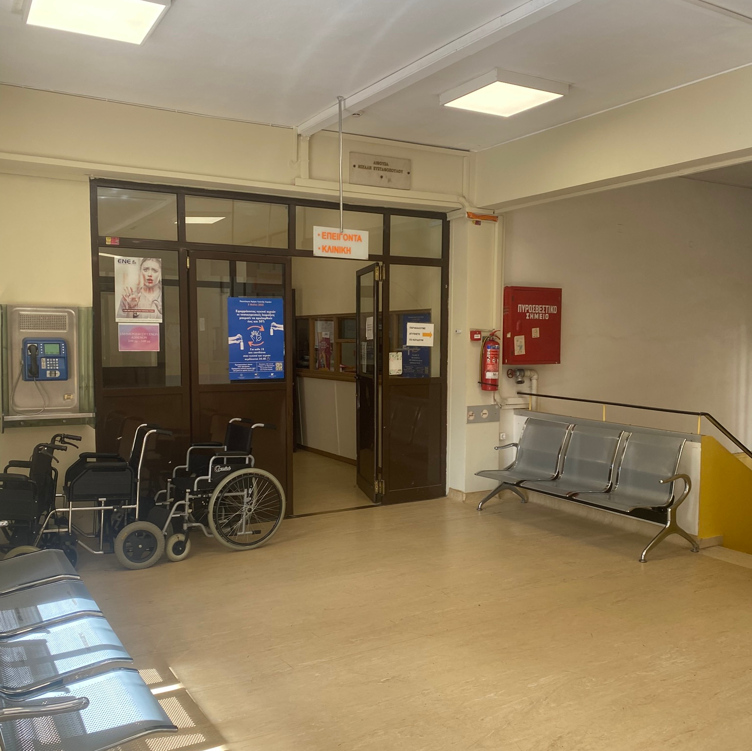 Η είσοδος των Τ.Ε.Π., στην αριστερή πλευρά της κεντρικής εισόδου του Νοσοκομείου